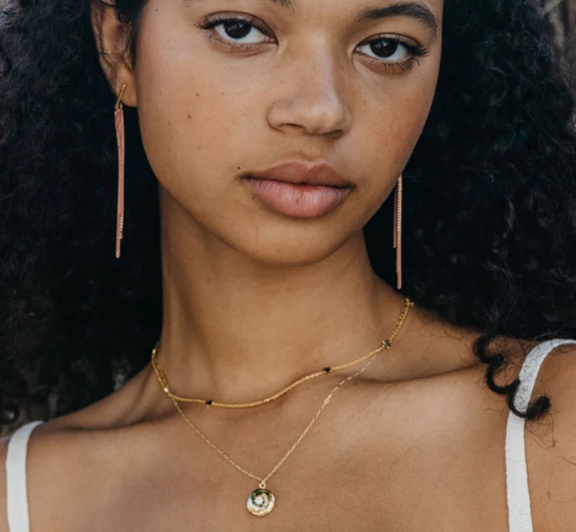 Small round locket with Czech crystal on 20" fine chain, made of brass with a 14k gold plate.