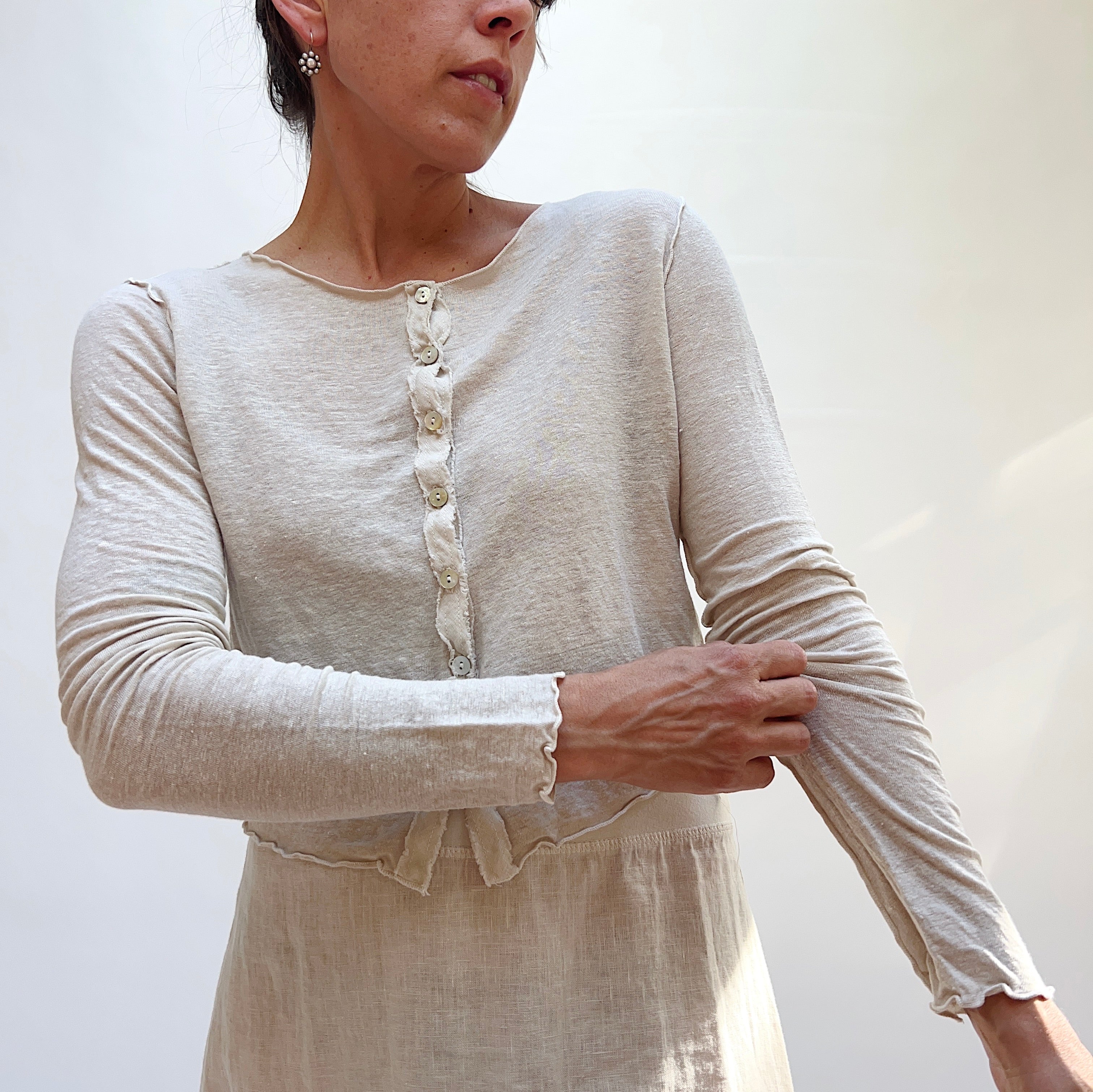 Cropped Fine Linen Blend Cardigan in Jicama