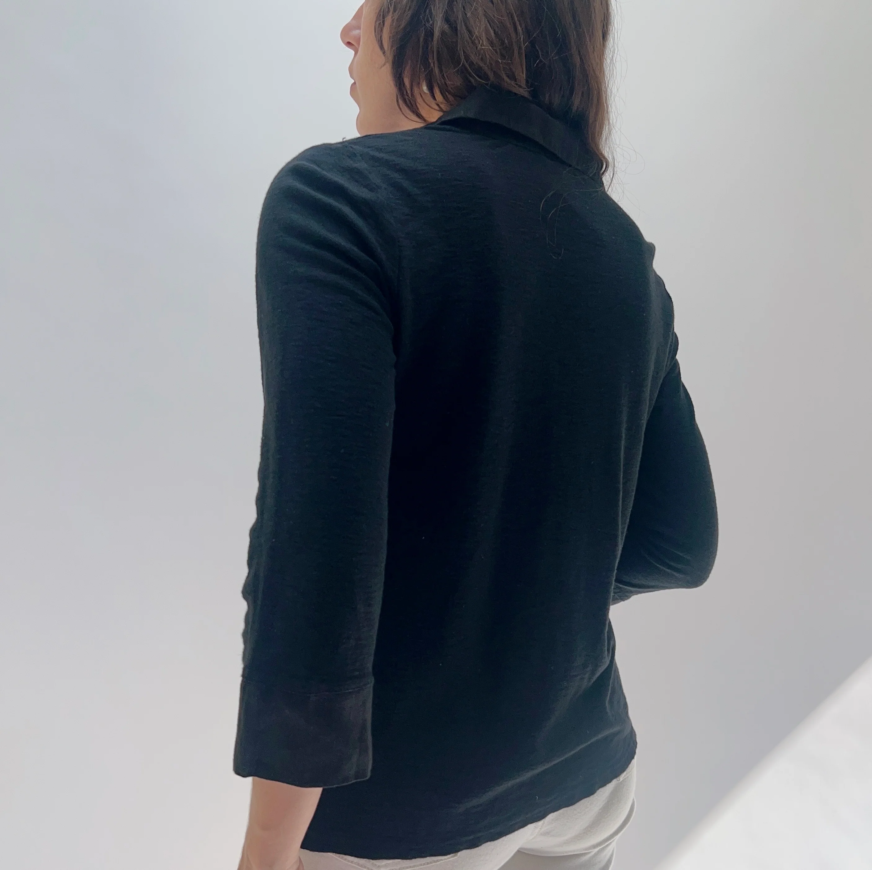 Cut Loose | V-Neck Button Down in Black Linen Combo