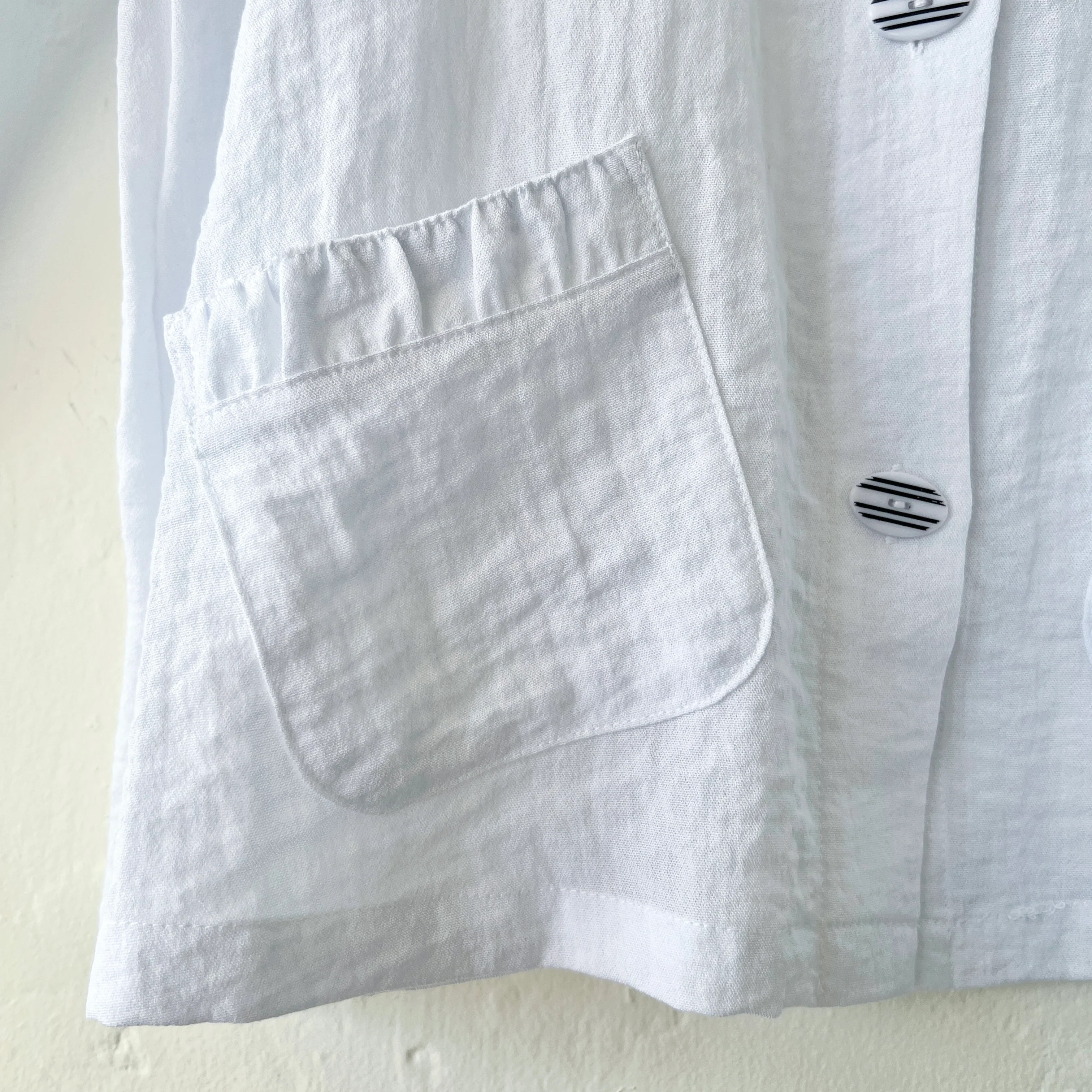 Crafted from a lightweight, crinkle-textured fabric, this jacket resists wrinkles—making it perfect for travel and on-the-go elegance. The relaxed fit, mandarin collar, and unique button-front design create a polished yet casual look.