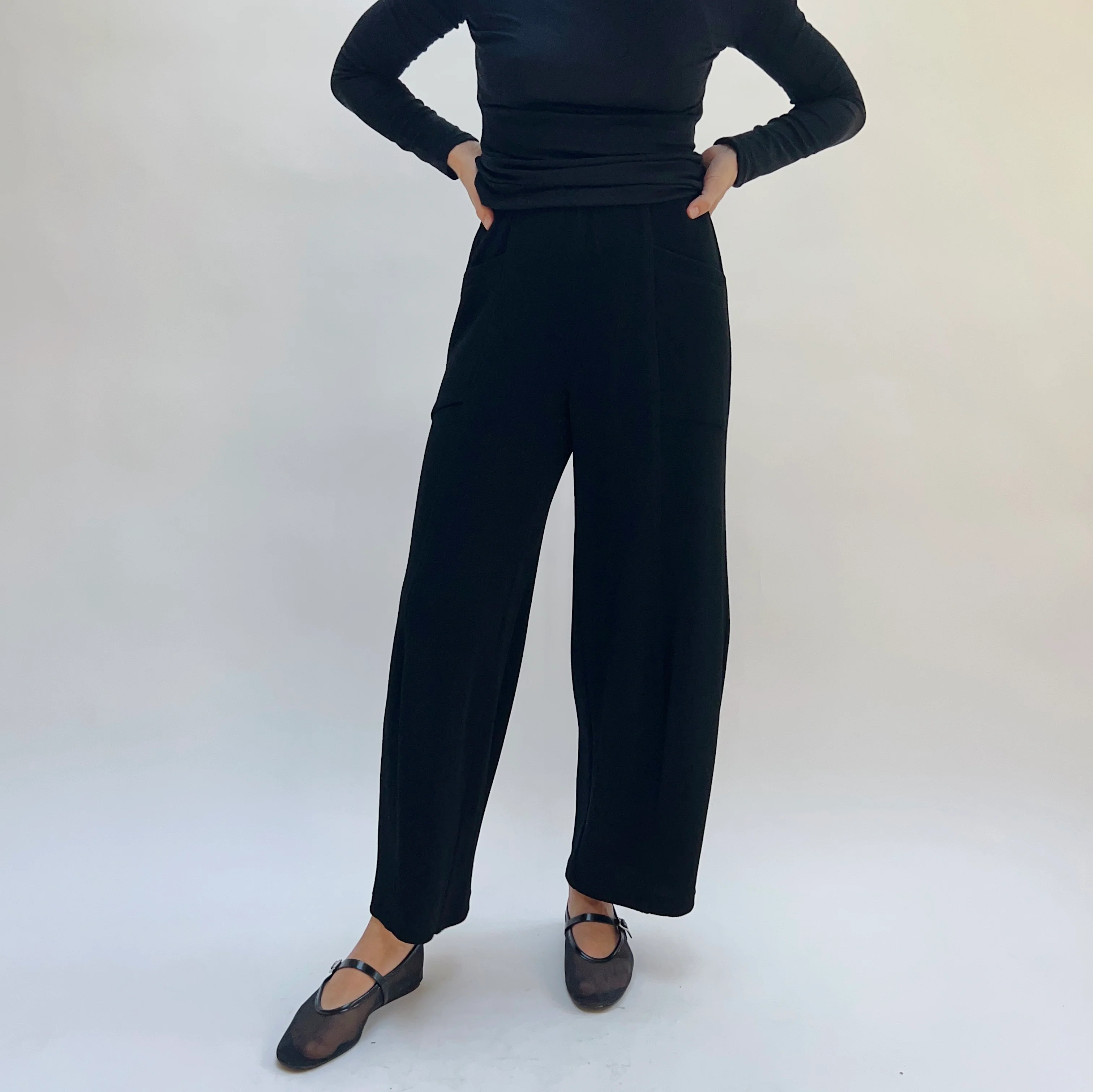 Chic and easy to wear pants featuring two pockets, front seam detailing, and a slight lantern hem.